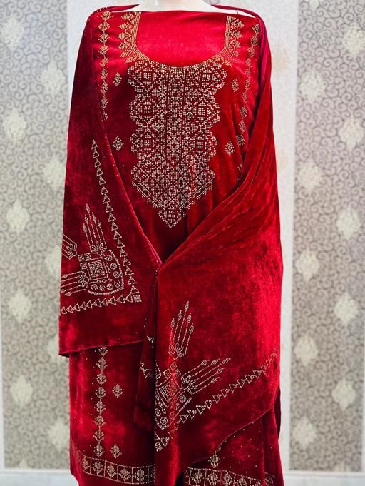 Women velvet woolen suits salvar with heavy work dupatta and super fine quality fabrics and embellishments