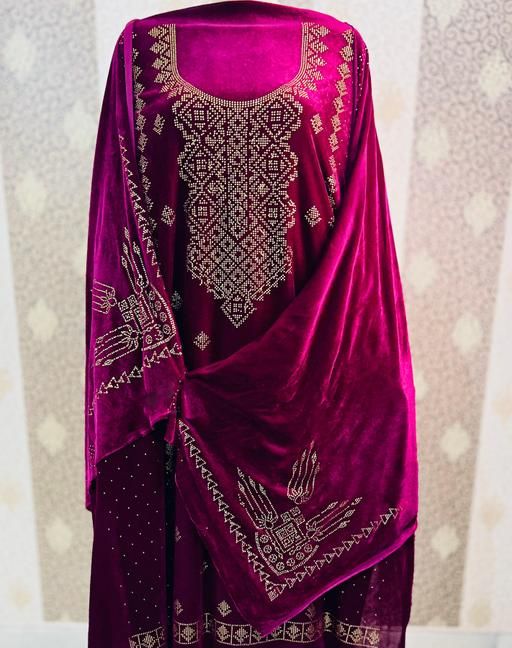 Women velvet woolen suits salvar with heavy work dupatta and super fine quality fabrics and embellishments