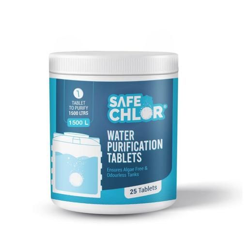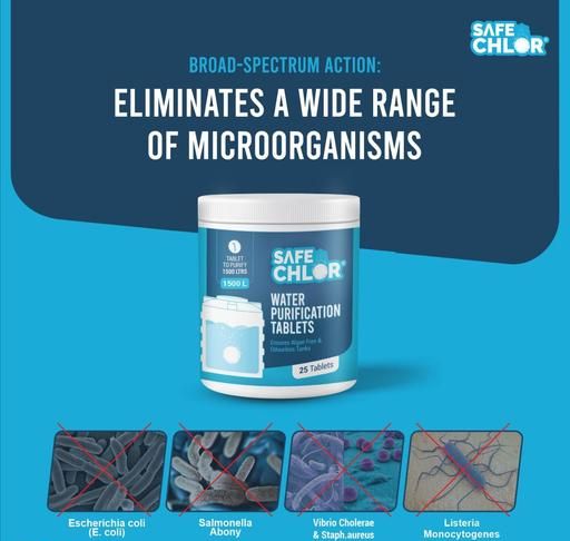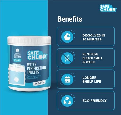 Safe Chlor 1500 L | Chlorine Tablet for Water Tanks of 1500 Ltrs, Overhead & Underground Water Tanks; Water Purification Tablets Kills Bacteria and Prevents Algae; Pack of 25 Tablets for 37500 Ltrs