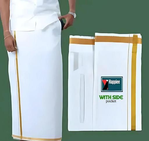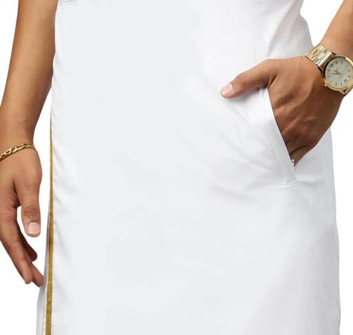 Name: All Size Adjustable Velcro Pocket Dhoti with Gold Jari Border for Men (28 to 44 Inches)