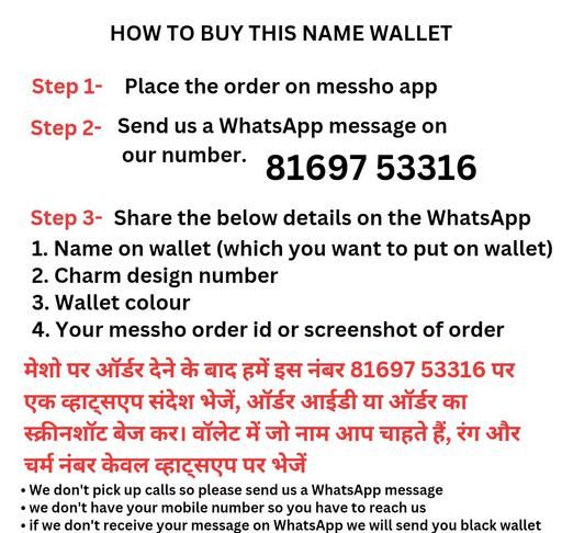 STEP 3:-Share the below details on Whats_App 81697 53316 Order ID Number. Name on wallet (Which you want us to put on wallet) Charm Design Number.