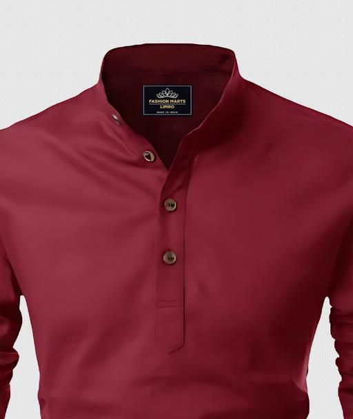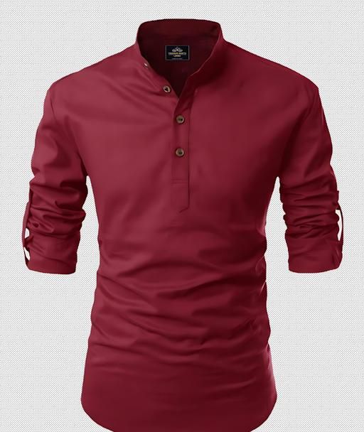 Name: Men Solid Cotton Blend Straight Short Kurta ( MAROON )