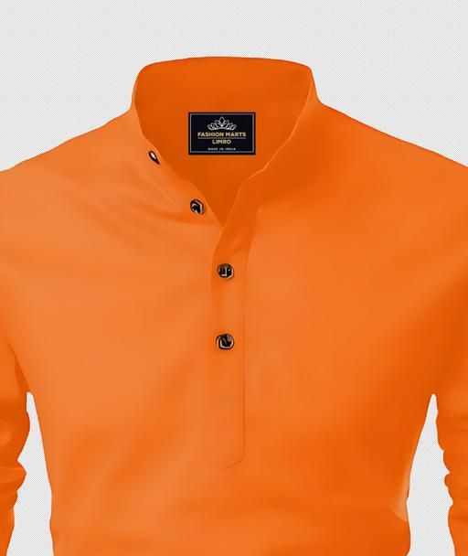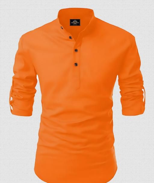 Name: Men Solid Cotton Blend Straight Short Kurta ( ORANGE )