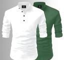 Trendy Fashionable Short Kurta For Mens (WHITE AND CHIKU)