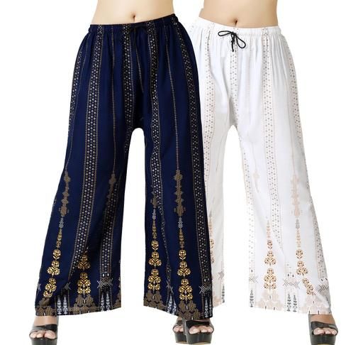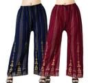 A pack of 2 bottom wear women's palazzo pants is a stylish and comfortable choice for any occasion. Palazzo pants are wide-legged trousers that are flowy and made from lightweight fabrics such as cotton, silk, or rayon. The pack usually includes two pairs of palazzo pants in different colors, prints, or styles.