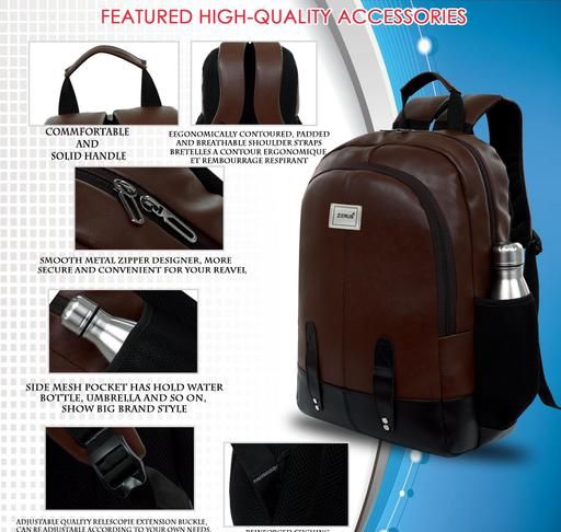 Product Name: Size: M (15-30L) Zerus Brown PU Leather Laptop Backpack | 15.6” Office, Travel & Daily Use Bag