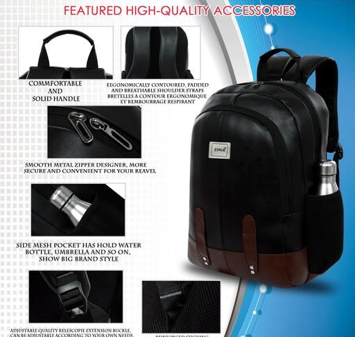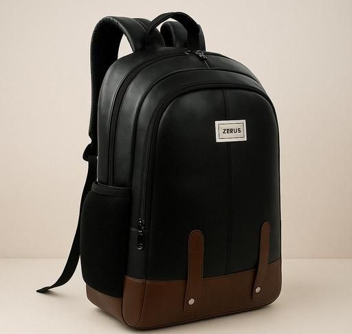 This Zerus PU leather backpack is perfect for daily use bag offering 3 compartments for easy organization and a separate padded laptop sleeve that fits up to 15.6" laptops backpack with padded sleeve. Designed for both men and women this sleek and stylish backpack is made from high-quality PU leather ensuring durability. The adjustable shoulder straps and breathable mesh back backpack provide comfortable during long hours of wear. With side pockets for water bottles and umbrellas it’s ideal for commuters students and professionals. This spacious backpack will keep your essentials secure and easily accessible throughout the day PU leather backpack for men PU leather backpack for women Work and travel backpack adjustable shoulder strap backpack spacious backpack with compartments water bottle and umbrella holder backpack professional laptop backpack for men college and office backpack for women