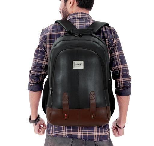 Product Name: Size: M (15-30L) Zerus Black PU Leather Laptop Backpack 15.6” Office College Travel Bag for Men & Women