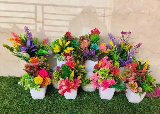 LIFE like potted plants are a perfect addition to your home or office decor. Suitable for both indoor or outdoor use. Home and Office Decor : Perfect to display on your bookshelf, living room mantle, coffee table, dining room table, cabinet,, desk, kitchen, window ledge, foyer and any other place to bring more lifelike colors. Good Quality: Flowers and Leaves are made of plastic.Comes with gray paper pulp pots, please do not put the pots in the water. Bring some fresh spring décor arrangements into your home! Small & lightweight!
