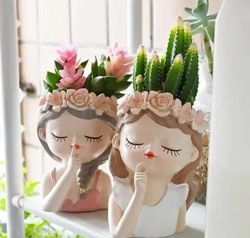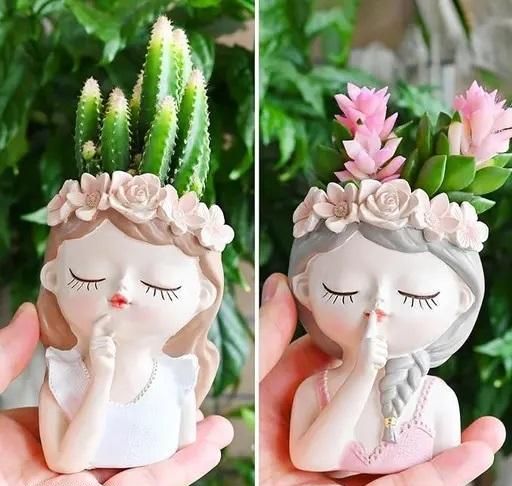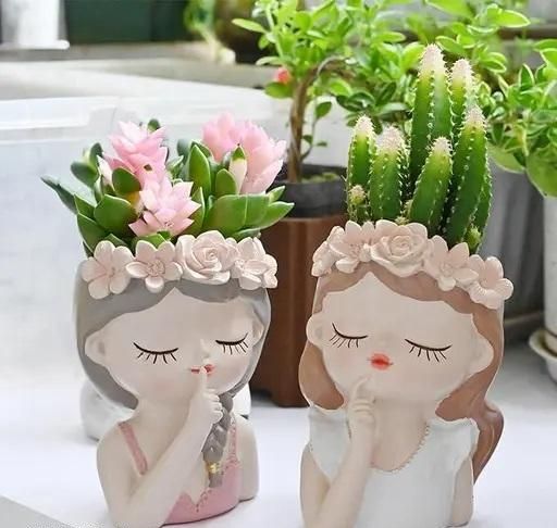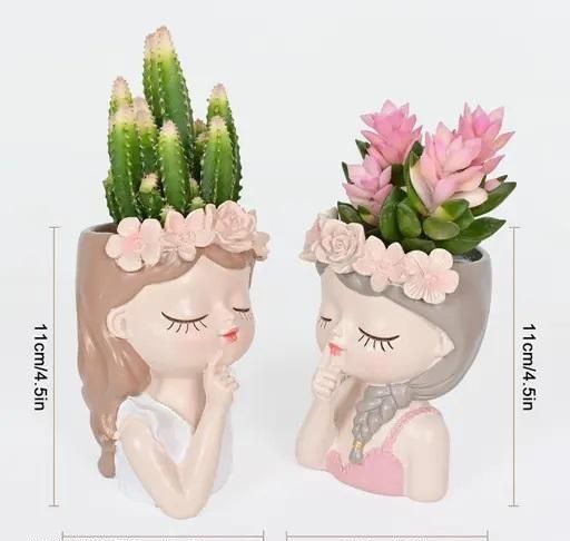 Name: Resin Head Planter - Set of 2 | Cute Cartoon Design | Mini Succulent Flower Pot with Drainage System Option | Ideal for Succulents and Small Plants (Withot Plant)