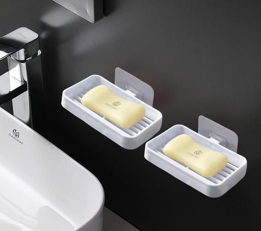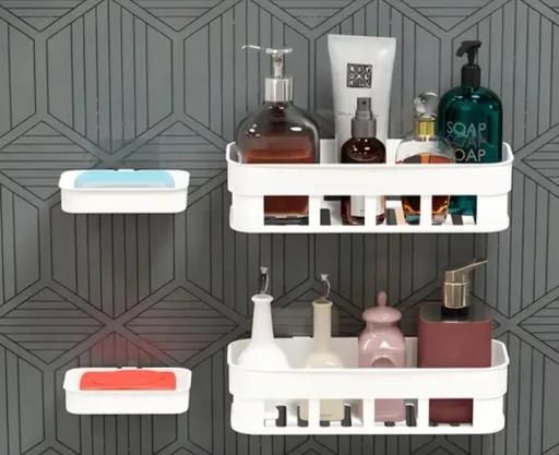 SP Bathroom selvas Plastic Self Adhesive Bathroom Shelf/Bathroom Organizer Shelf/Wall Mount Bathroom Accessories (2 Bath Shelf + 2 Soap Dish),White
