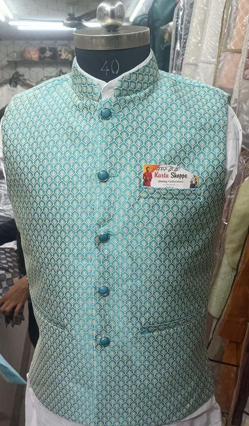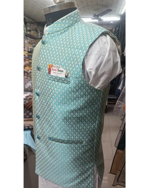 MENS ETHNIC JACKET IN JACQUARD SILK FABRIC FITTING SIZE PLEASE MATCH YOUR SIZE ACCORDING TO SIZE CHART AND THEN ORDER