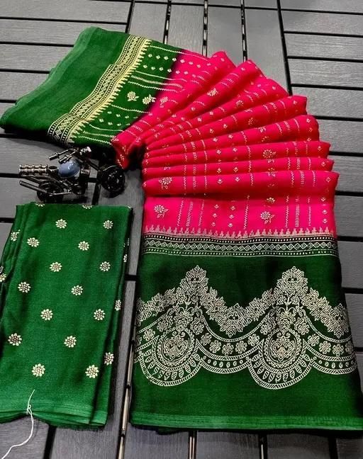 Name: NavSarjan® Silk foil printed saree with pallu blouse and