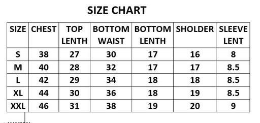 XXL (Top Chest Size: 42 in, Top Length Size: 31 in, Bottom Waist Size: 38 in, Bottom Length Size: 19 in, Shoulder Length Size: 20 in, Bottom Hip Size: 38 in)