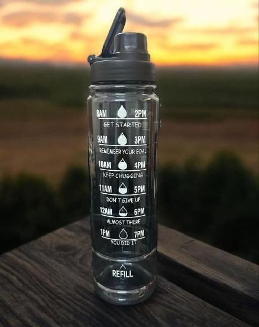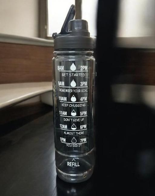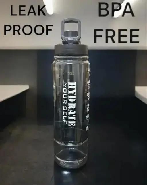 Stay energized and on track with our Premium Motivational Water Bottle. Crafted for everyday hydration, this sleek 1000 ml black water bottle features a bold "Hydrate Yourself" reminder to keep your wellness goals front and center. Made from BPA-free durable plastic, it's perfect for workouts, travel, or office use.