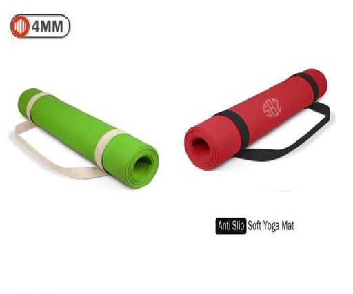 4mm Yoga/Exercise Mat with Carry Strap for Men & Women IN GREEN AND RED COLOR COMBO