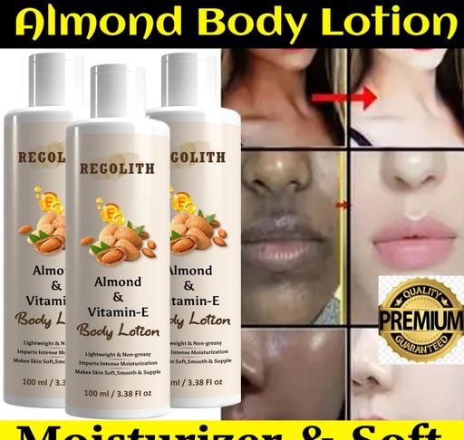 Name: Regolith Almond & Vitamin -E Body Lotion Skin Whitening Body Lotion for Dry Skin Protection with Almond Oil & Vitamin E. 100ML(Pack of 3)
