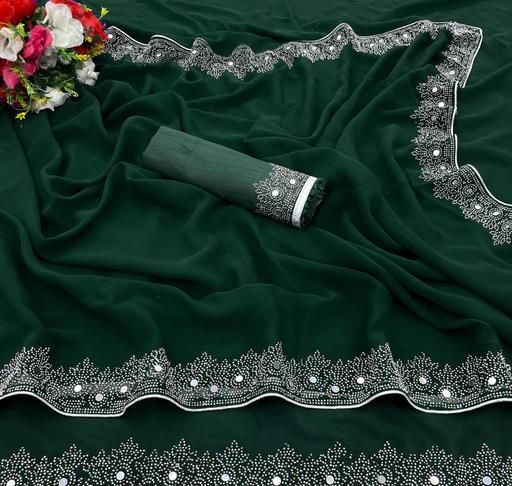 Women's Georgette Handloom Diamond Work Saree with Separate Blouse Piece