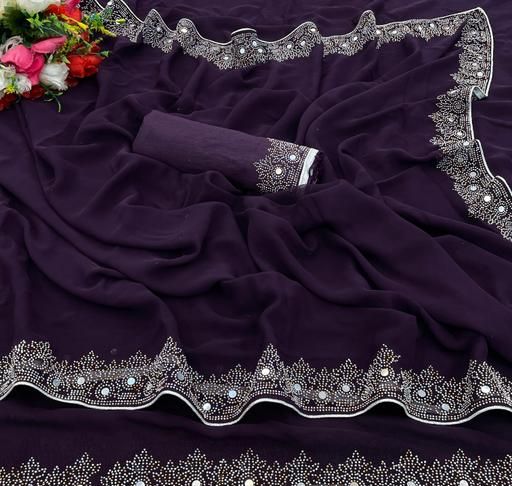 Name: Women's Georgette Handloom Diamond Work Saree with Separate Blouse Piece