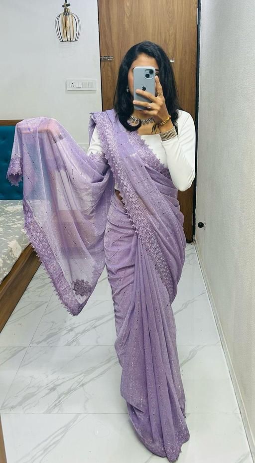 Name: SHIMMER SAREE WITH MIRROR WORK AND CHEMICAL LACE AND DIMOND HAND WORK