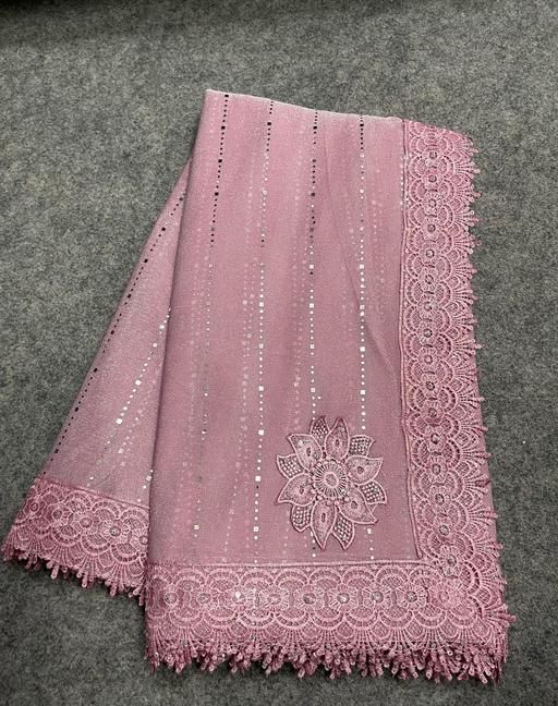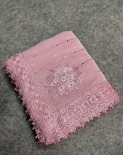 SHIMMER SAREE WITH MIRROR WORK AND CHEMICAL LACE AND DIMOND HAND WORK