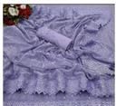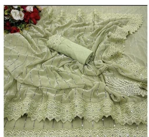 Imported shimmer fabric with embroidered chemical/schiffli lace and intricate mirror tikli work, elegantly matched with a Banglori unstitched blouse, creates a captivating ensemble.