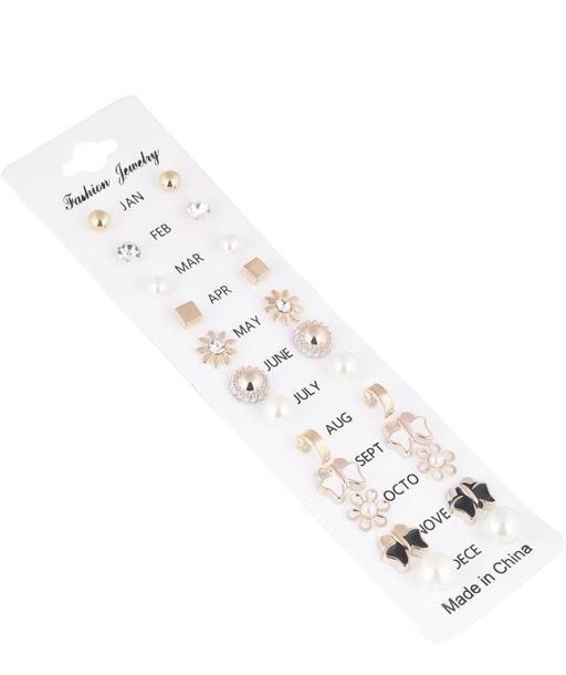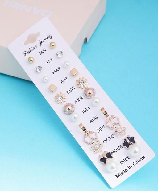 Name: Beautiful 12 Pair Combo Set Zircon, Black, Pearl Brass, Stone, Silicone, Alloy, Silver Stud Earring, Hoop Earring, Cuff Earring, Ear Thread, Earring Set girls, and woman