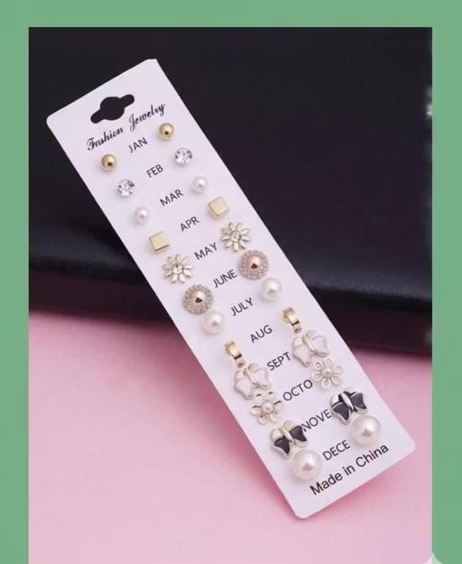 Beautiful 12 Pair Combo Set Zircon, Black, Pearl Brass, Stone, Silicone, Alloy, Silver Stud Earring, Hoop Earring, Cuff Earring, Ear Thread, Earring Set girls, and woman