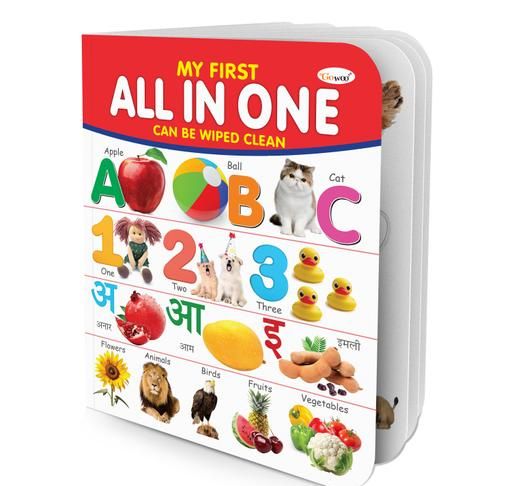 Nurture your child's curiosity and language skills with GOWOO's "MY FIRST ALL IN ONE BOARD BOOK," an engaging and durable board book designed to support early childhood education. Sized at 8.5*11 inches, this book is perfect for little hands and is specifically created for children aged 3-12. With a focus on both English and Hindi, this bilingual book introduces the fundamental building blocks of language and numbers. Inside, your child will find lively illustrations and simple text that guide them through learning the alphabet (ABC), numbers (123), and basic Hindi vowels (a, aa, i). The bilingual approach encourages a seamless introduction to both languages, helping children to develop literacy skills in an interactive and enjoyable way. The sturdy pages are built to endure frequent handling, ensuring that this book remains a favorite as your child grows. "MY FIRST ALL IN ONE BOARD BOOK" by GOWOO is a versatile tool for early education, providing a solid foundation for reading and counting. This board book not only equips children with the skills they need for school but also fosters a lifelong love of learning through its engaging content and bilingual approach. Make this book a part of your child's daily learning routine and watch them thrive.