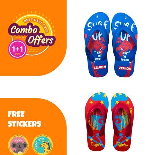 with 1 + 1 combo offer Enjoy Amazing & Unique Cartoon Designs Kids Flip Flops that are Cute & Interesting, they are able to Attract Children's Attention & Make Your Kid's Feet Look More Pretty & Elegants , also Make Your Children Look Out of Ordinary. We believe that Kid's will like these Slippers Very Much as they are Made from Superior Quality Material & are Soft, Breathable, Comfortable, Lightweight & Flexible to Support Natural Foot Movement. a product by Zevion