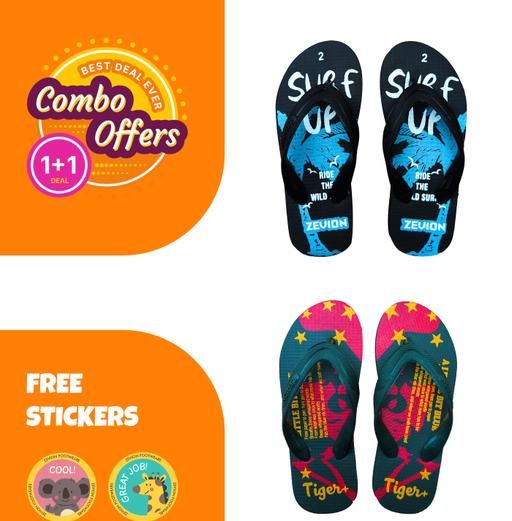 with 1 + 1 combo offer Enjoy Amazing & Unique Cartoon Designs Kids Flip Flops that are Cute & Interesting, they are able to Attract Children's Attention & Make Your Kid's Feet Look More Pretty & Elegants , also Make Your Children Look Out of Ordinary. We believe that Kid's will like these Slippers Very Much as they are Made from Superior Quality Material & are Soft, Breathable, Comfortable, Lightweight & Flexible to Support Natural Foot Movement. a product by Zevion