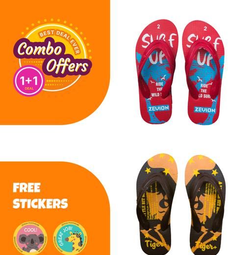 with 1 + 1 combo offer Enjoy Amazing & Unique Cartoon Designs Kids Flip Flops that are Cute & Interesting, they are able to Attract Children's Attention & Make Your Kid's Feet Look More Pretty & Elegants , also Make Your Children Look Out of Ordinary. We believe that Kid's will like these Slippers Very Much as they are Made from Superior Quality Material & are Soft, Breathable, Comfortable, Lightweight & Flexible to Support Natural Foot Movement. a product by Zevion