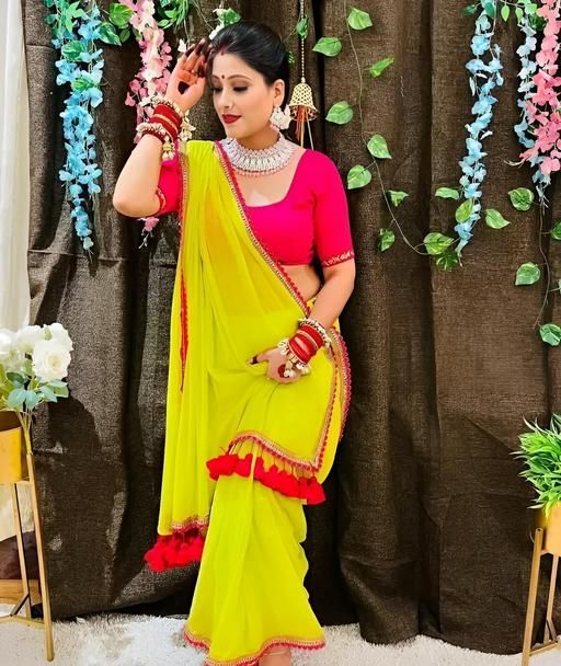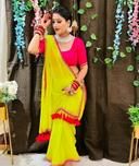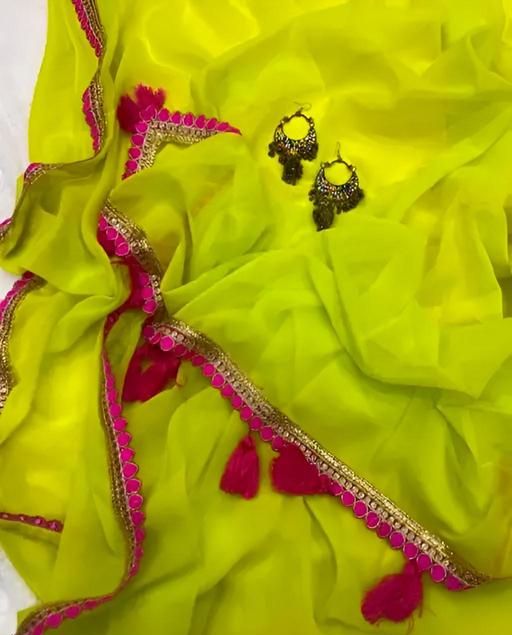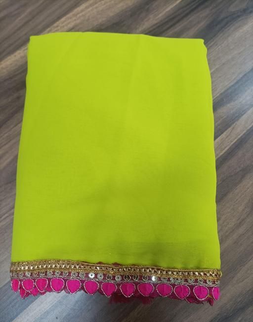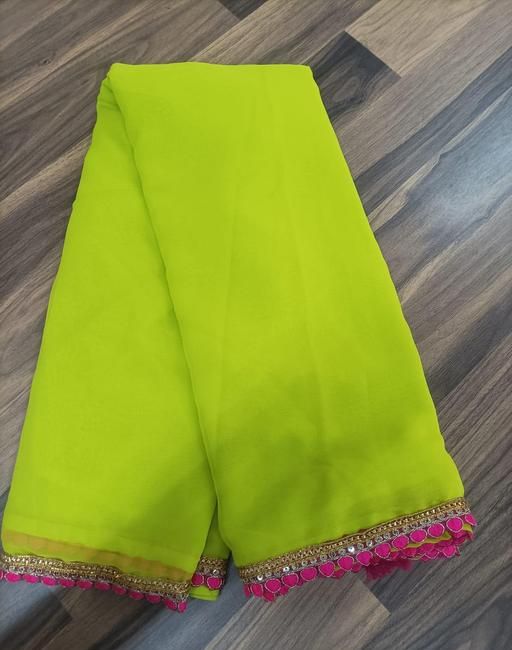 Name: Georgette Embroidered Green Saree With Pink Lace Border