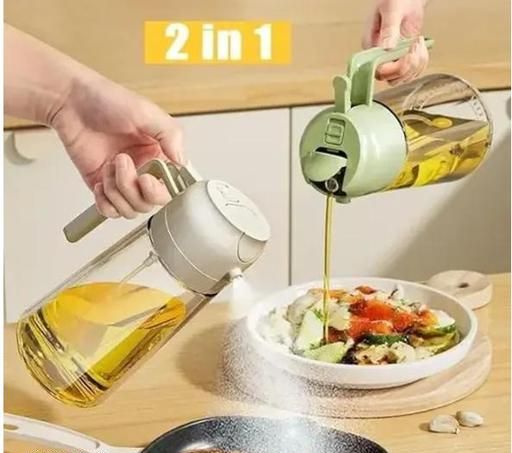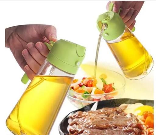 Name: 2 in 1 Olive Oil Sprayer and Oil Dispenser Bottle for Kitchen, Plastic & glass Oil Bottle with Premium Nozzle, Oil Sprayer for Aiir Fryer, Salad, Frying, Baking (Multicolour)