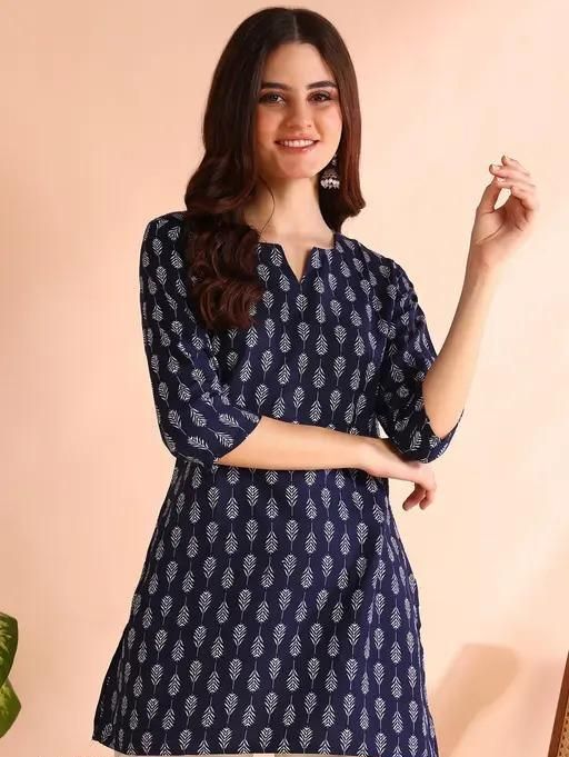 Name: Floral Print V-neck Short Kurti & Tunic For Women And Girls (Single)