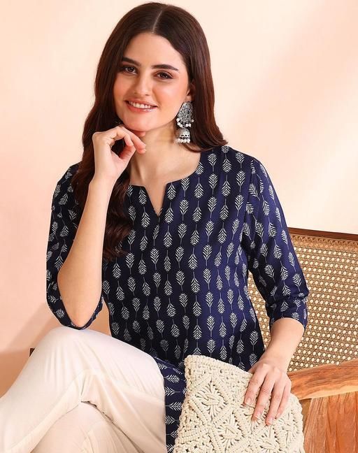 Floral Print V-neck Short Kurti & Tunic For Women And Girls (Single)