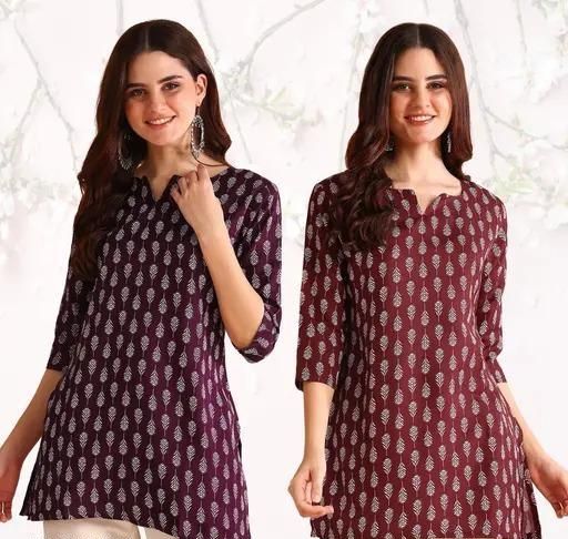Name: Floral Print V-neck Short Kurti & Tunic For Women And Girls (Pack of 2)