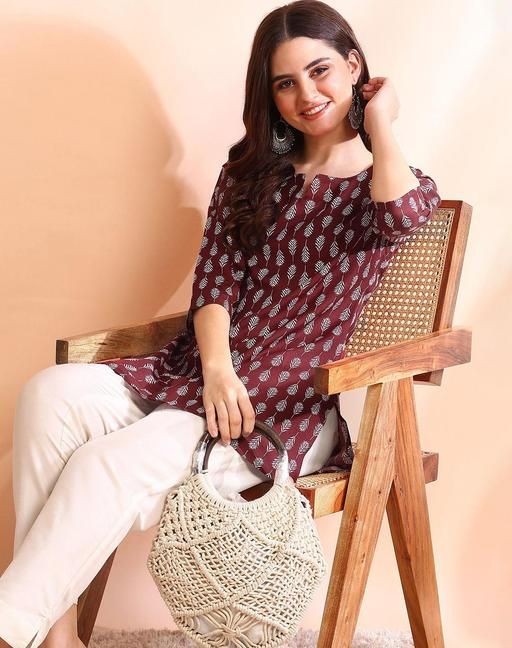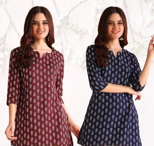 Name: Floral Print V-neck Short Kurti & Tunic For Women And Girls (Pack of 2)