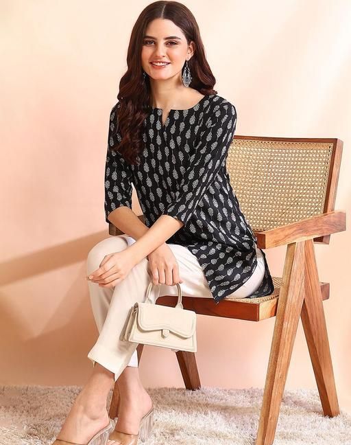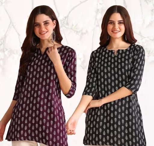 Name: Floral Print V-neck Short Kurti & Tunic For Women And Girls (Pack of 2)