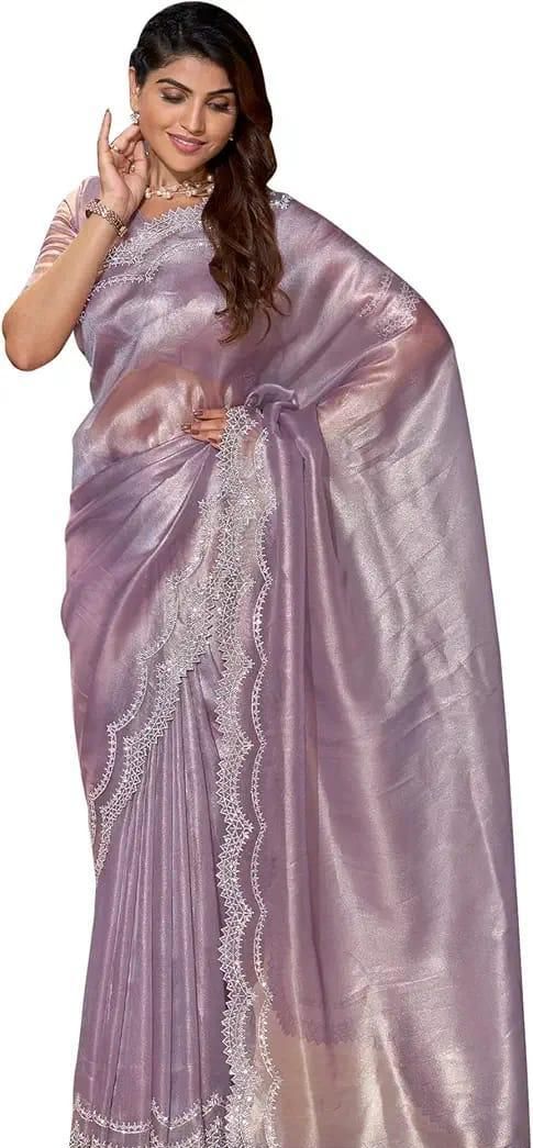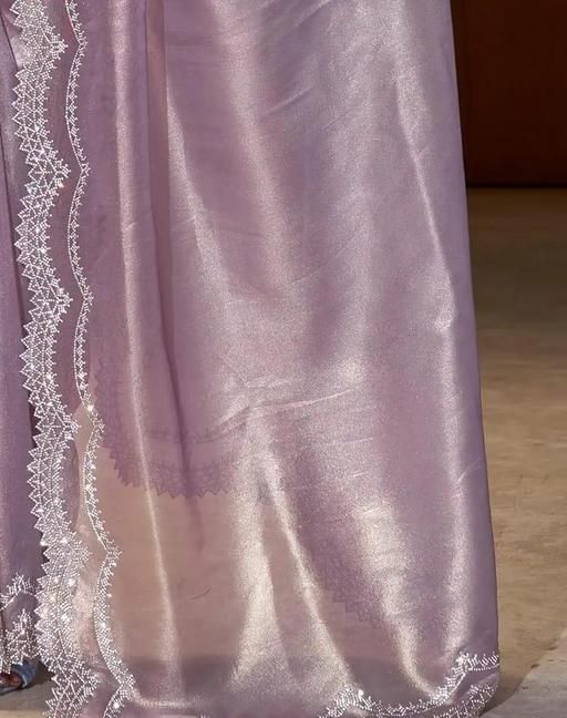 Name: Trending Nylon Net Saree Light Pink Colour Beautiful Swarovski Crystals Work Bordar With Cut Work Saree