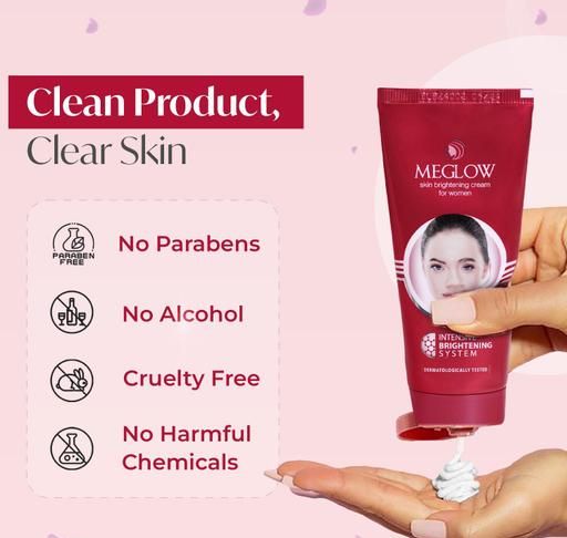 Product Name: Meglow Skin Brightening Cream for women - 15g (Pack of 4) | Infused with Aloevera, Niacinamide, Vitamin E and Cucumber Extract