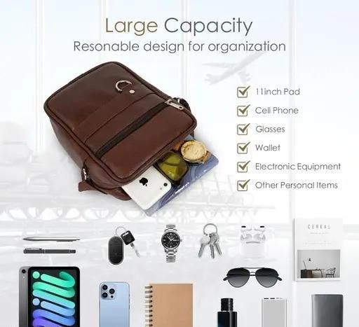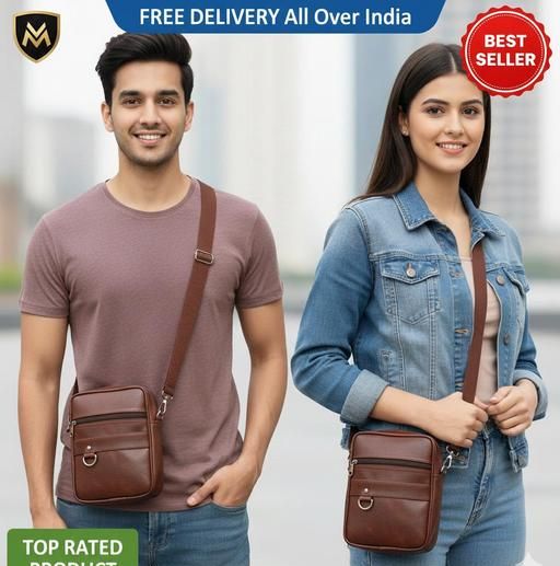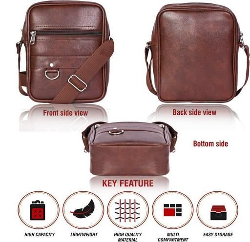 Name: Premium Vintage Brown Unisex Crossbody Sling Bag | Stylish Multi-Pocket Side Bag for Men & Women | Durable Travel & Office Sling