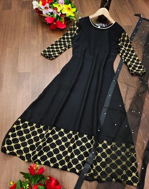 Name: Women embroideried georgette gown with net dupatta