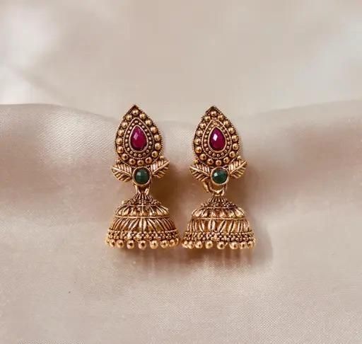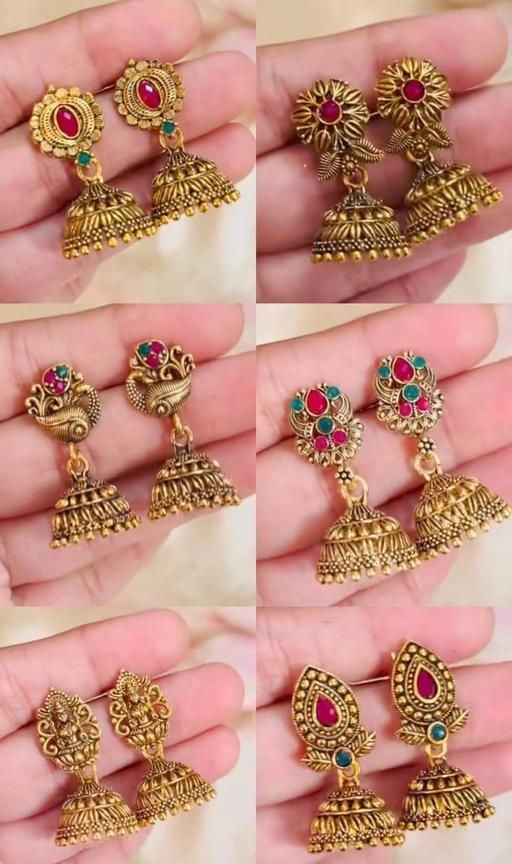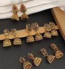 Add a touch of elegance to your look with this pack of 6 gold-plated fancy Jhumka earrings, inspired by South Indian traditional jewellery. These intricately designed ethnic earrings feature a classic and timeless appeal, making them perfect for festive occasions, weddings, and everyday wear. Crafted with premium quality materials, they offer a lightweight, comfortable fit and a beautiful finish that complements both traditional and modern outfits.