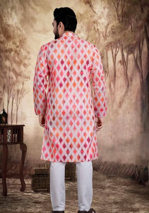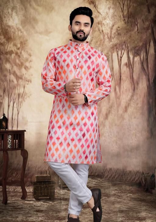 Care Instructions: Hand Wash Only Fit Type: Relaxed HIGH QUALITY MATERIAL: Made from the cotton blend fabric. Lightweight and breathable material gives this kurta set soft, comfortable feel. BEAUTIFUL HANDLOOM KURTA SET : This is a 2-pieces set that includes long button down shirt or kurta and a drawstring Traditional design on this kurta captures all of the details of the classic Indian men's garment with long sleeves, COMFORTABLE FIT: Sizing is designed for a regular relaxed fit. Collar: Mandarin, Sleeves: Full, Length: Knee length Kurta, Occasion: Casual, Party, Festival and Special Occasions, Package content: Kurta set for Diwali Fancy Kurta Having Vibrant Color and Attractive design.