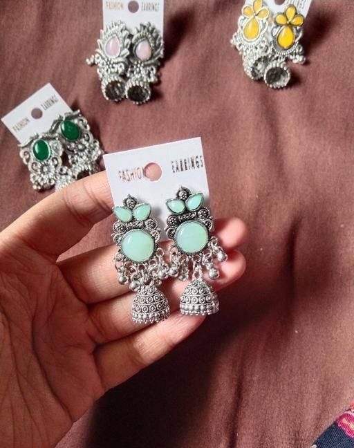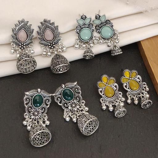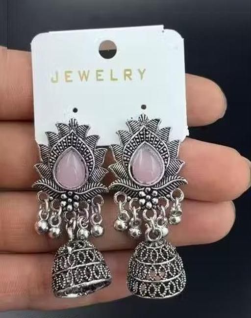 Name: These stunning oxidized silver jhumkas feature vibrant red, green, and pink hues, perfect for festive occasions. Their intricate designs complement any outfit, adding a touch of elegance and tradition, making them an ideal accessory for celebrating in style
