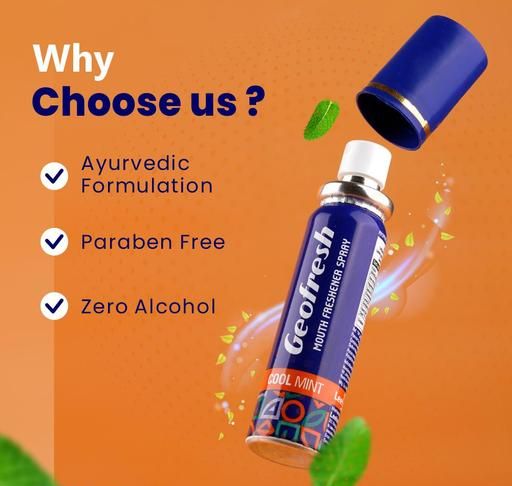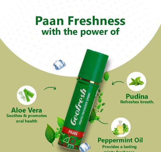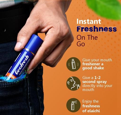 Geofresh Mouth Freshener Spray is your go-to solution for instant freshness, providing complete freedom from bad breath and unwanted food odours in seconds. Whether you’re preparing for a sales call, a business meeting, a date, or any intimate moment, this versatile mouth freshener has you covered. Formulated to combat bad breath caused by dietary choices, lifestyle factors, or even medical reasons, Geofresh helps you feel confident and ready for anything. Available in three irresistible flavours Cool Mint, Paan, and Elaichi. Its compact design makes it easy to carry in your purse or pocket, allowing you to refresh your breath anytime, anywhere. Elevate your confidence and enjoy life to the fullest with Geofresh Mouth Freshener Spray. Experience the convenience and effectiveness of a product designed for modern living, and never let bad breath hold you back again.