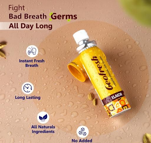 Geofresh Mouth Freshener Spray is your go-to solution for instant freshness, providing complete freedom from bad breath and unwanted food odours in seconds. Whether you’re preparing for a sales call, a business meeting, a date, or any intimate moment, this versatile mouth freshener has you covered. Formulated to combat bad breath caused by dietary choices, lifestyle factors, or even medical reasons, Geofresh helps you feel confident and ready for anything. Available in three irresistible flavours Cool Mint, Paan, and Elaichi. Its compact design makes it easy to carry in your purse or pocket, allowing you to refresh your breath anytime, anywhere. Elevate your confidence and enjoy life to the fullest with Geofresh Mouth Freshener Spray. Experience the convenience and effectiveness of a product designed for modern living, and never let bad breath hold you back again.