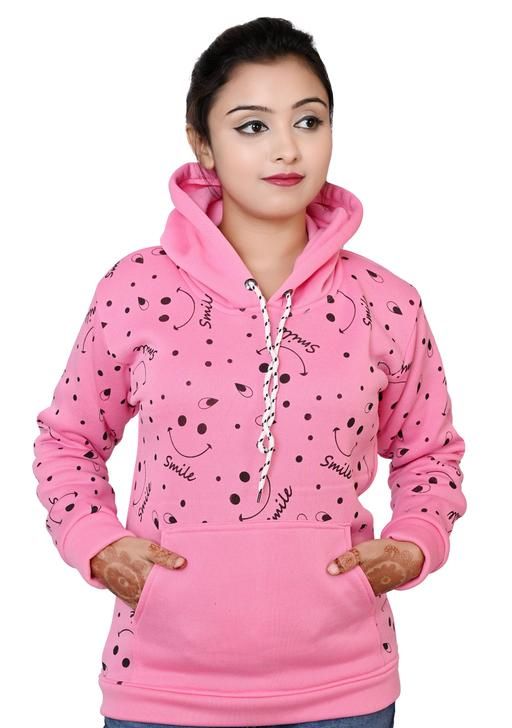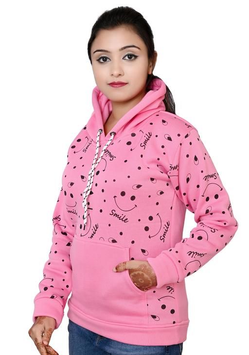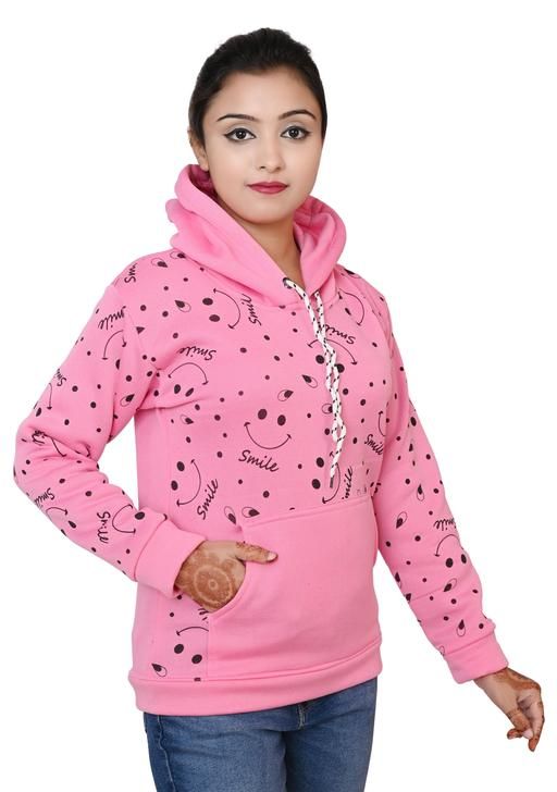 hoodies for girl (Pink) Full Sleeves Printed Sweatshirt with Hood