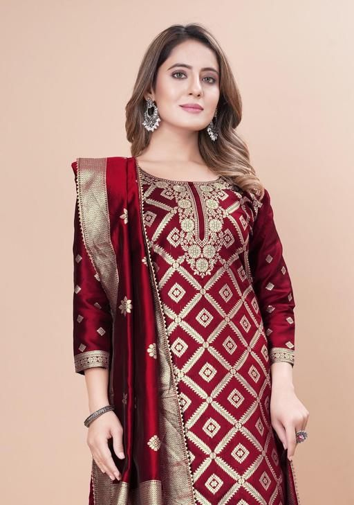 Name: Jacquard Silk Suit Dress Material for Women Top Fabric: Banarasi Silk + Top Length: 2.2 Meters Bottom Fabric: Banarasi Silk + Bottom Length: 2 Meters Dupatta Fabric: Banarasi Silk + Dupatta Length: 2.25 Meters Lining Fabric: Art Silk Type: Un Stitched Pattern: Printed Net Quantity (N): Single Name : Jacquard Silk Suit Dress Material for Women Top Fabric : Banarasi Silk Bottom Fabric : Banarasi Silk Dupatta Fabric : Banarasi Silk Lining Fabric : Silk Type : Un Stitched Pattern : Woven Design Net Quantity (N) : Single Name : Designer Art Silk Unstitched party wear suit for women latest design Top Fabric : Art Silk + Top Length: 2.2 Meters Bottom Fabric : Art Silk + Bottom Length: 2 Meters Dupatta Fabric : Art Silk + Dupatta Length: 2.01-2.25 Lining Fabric : Art Silk Type : Un Stitched Pattern : Zari Woven Net Quantity (N) : Single In this product suit fabric 2.20 meters bottom fabric 2.00 meters dupatta fabric 2.00 to 2.25 meters are provided This cloth is made from art silk fabric. #women suit #suit #ethnic wear for women #suit set for women partywear #punjabi suit set for women #material chudithar for women #salwar suit material for women #heavy suit #suit for women latest design party #salwar suit set for women #plazo suit for women stylish latest #suit salwar suit set #ladies suits #chudi material for women latest design #black suit for women #wedding wear #salwar suits for women #ladies suit for women Country of Origin: India